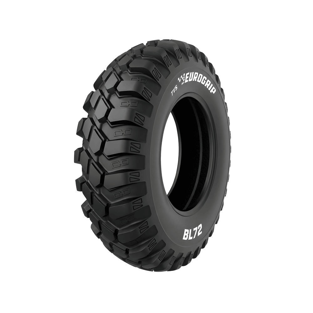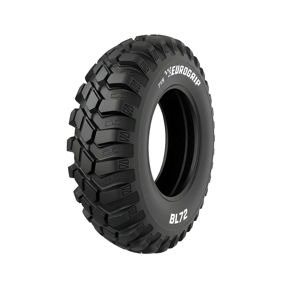The BL 72 is a new approach to front tyres for 2WD backhoe loaders and industrial tractors. The ideally spaced non-directional block-on-lug tread design provides optimal traction, lateral stability and superior self-cleaning. The raised bridge in the centre line of the tyre, provides stability to the lugs providing smooth on-road performance and improved steering.